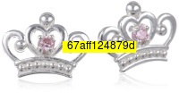 Disney Princess Sterling Silver Pink Crown Shaped Stud Earrings
